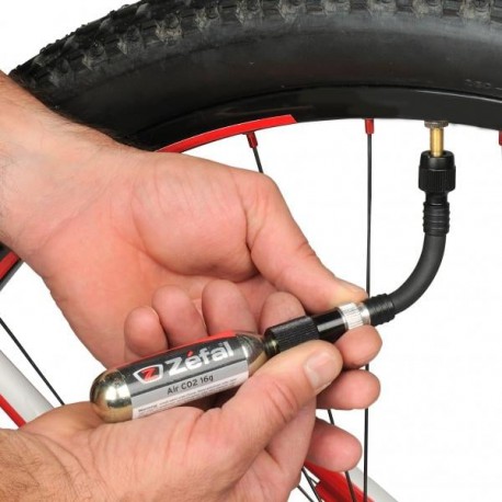Regolatore CO2 Zèfal EZ Control FC di 16 g. di gonfiaggio semplice, compatto e leggero. Fabbricato utilizzando la tecnologia sistema Z-Flow che controlla il flusso attraverso la filettatura del pezzo di alluminio e con il Racord Z-Flex di raccordo flessibile che consente di accedere più facilmente alla valvola e non vi è il rischio di romperla.